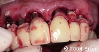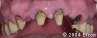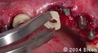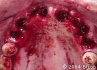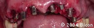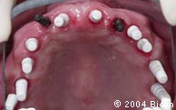 96. Вид абатментов на верхней челюсти перед их извлечением.