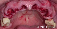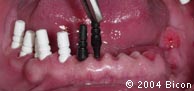 123. Внешний вид нижней челюсти с абатментами, после снятия временного протеза.