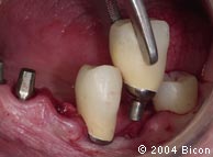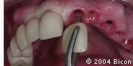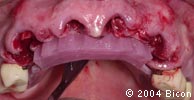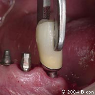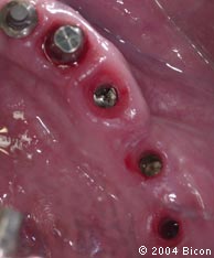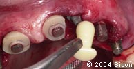 86. Абатменты вновь устанавливаются в ложа имплантатов, для повторной установки временных протезов.