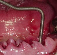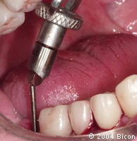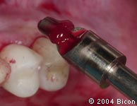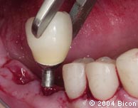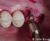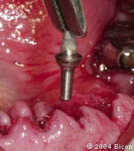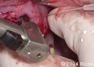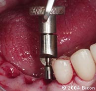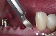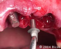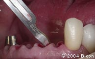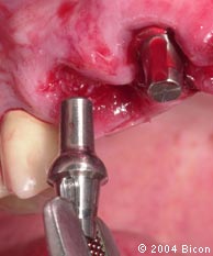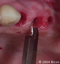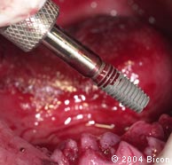 118. Десневой ример на прямом держателе, с направляющим штифтом, вводится в ложе имплантата.