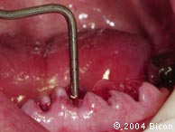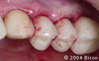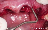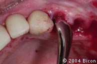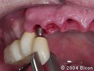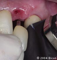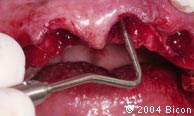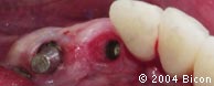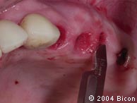 119. Десневой ример выведен из ложа имплантата, видна костная ткань.