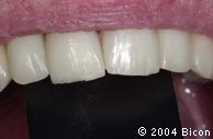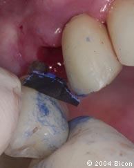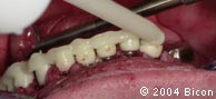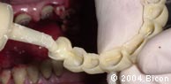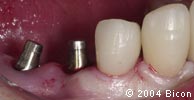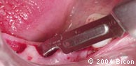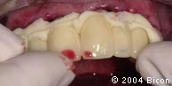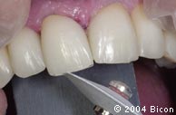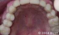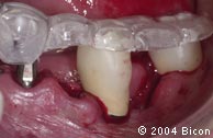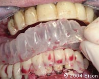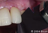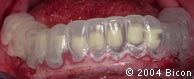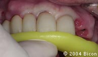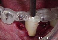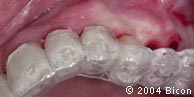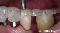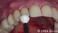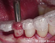 104. Направляющий шаблон используется для установки левого бокового резца. Обратите внимание, что мягкие ткани бледнеют.