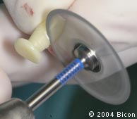 75. 2-миллиметровый черный пластиковый штифт вводится в ложе имплантата.