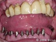 Немедленная стабилизация и функциональная нагрузка / полный зубной ряд / система Integrated Abutment Crowns™: установка двадцати семи имплантатаов с немедленной стабилизацией и функциональной нагрузкой, реставрация по системе Integrated Abutment Crowns™