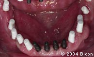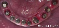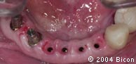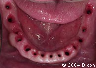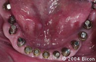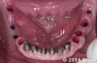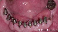 73. Внешний вид четырнадцати имплантатов и мягких тканей нижней челюсти.