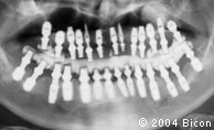 65. На рентгенограмме видны двадцать семь имплантатов с немедленной функциональной нагрузкой.