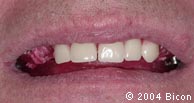 64. Внешний вид с протезами после установки дополнительных имплантатов.