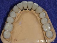 88. Внешний вид реставраций IntegratedAbutmentCrown на моделях.