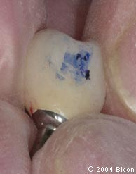 107. После проверки боковых контактов зубной нитью, все слишком тесные контакты сошлифовывают.