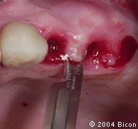 38. В ложе имплантата вводится глубиномер, чтобы правильно подобрать абатмент с соответствующей величиной уступа.
