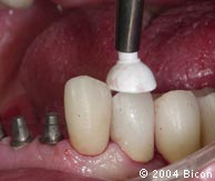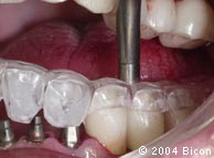 22. На акриловых колпачках фиксируют временный протез, изготовленный в лаборатории.