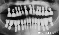 166. На рентгенограмме видны двадцать семь имплантатов с реставрациями Integrated Abutment Crowns™.