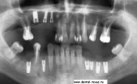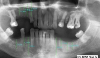 52-летний пациент обратился в клинику Дентекс с жалобами на отсутствие и разрушение зубов, нарушение жевания. Боковые зубы обеих челюстей были удалены после обострения хронического периодонтита и осложненного кариеса. Было проведено клиническое и рентгенологическое обследование, по результатам которого составлен подробный план лечения.