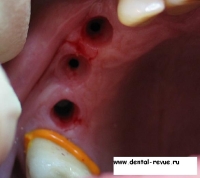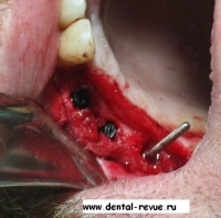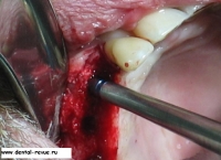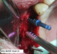 7. В рыхлой, несформированной кости препаровка ложа осуществляется остеотомами, что позволяет установить имплантат большего диаметра.