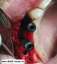 47. Отпрепарированные абатменты установлены в полости рта.
