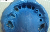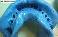 29. Увеличенное изображение оттиска верхней челюсти в области имплантатов.