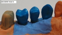 43. Восковая моделировка каркасов коронок на абатментах — нижняя челюсть справа.