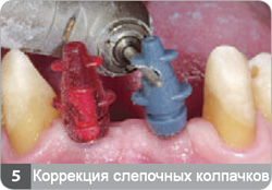 Обрезка слепочных колпачков производится по уровню модифицированного абатмента. Следует обрезать еще один, дополнительный, слепочный колпачок – он будет использоваться лаборантами при модификации трансферного абатмента.