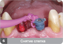 На уровне абатмента слепок делается непрямым методом: слепочный материал наносится вокруг колпачка и абатмента.